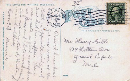 Back Side of Post Card of to Mrs. Lola Van Doren 1908
